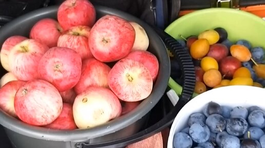 Яблоки и слива всё бесплатно, только собирайте.