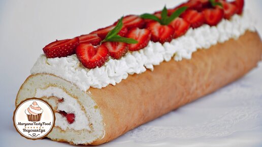 Бисквитный рулет с клубникой и творожным кремом ☆ Марьяна Рецепты