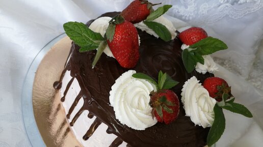 Торт Прага с клубничным кремом.