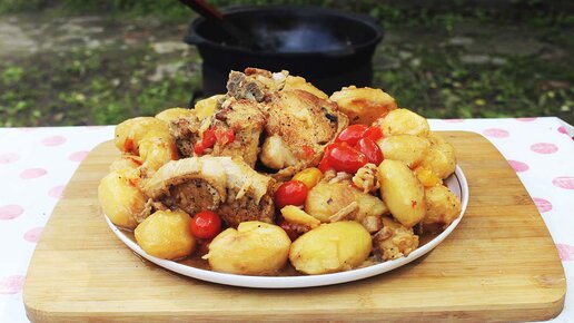 Картошка с мясом в казане на костре. Нереально вкусно!