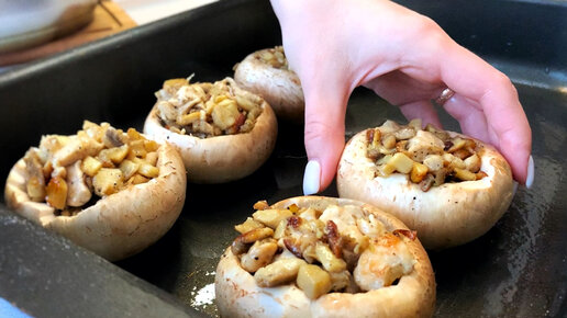 Фаршированные шампиньоны в духовке на ужин