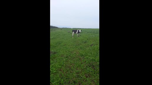 первый раз погнали теленка с коровами на пастбище в электро изгородь