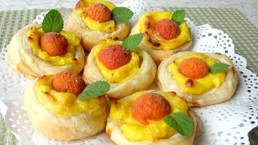 Слоеные гнезда с заварным кремом и абрикосами