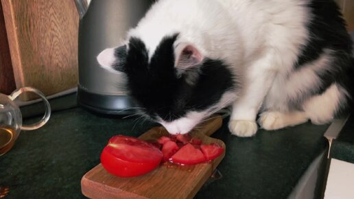 Хотела сделать салат, но мой кот съел целый помидор. Очень уж любит овощи)