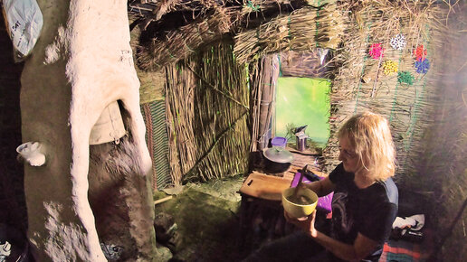 В хижине во время дождя варю чудо-суп. Показываю дикий огород