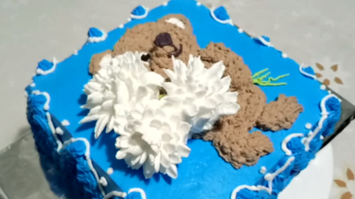 РИСУЕМ НА ТОРТЕ МИШКУ ИЗ КРЕМА