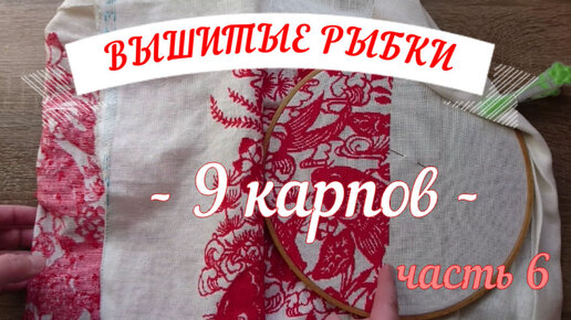 Вышитые рыбки - 9 карпов, монохромная вышивка, часть 6