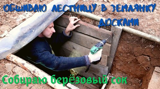 Землянка #14 / Новые ступени, берёзовый сок, уборка, непогода.