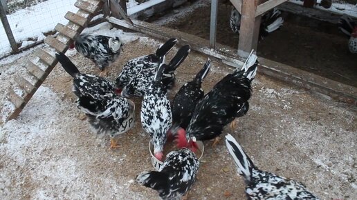 Куры далматинцы важный зимний моцион.
