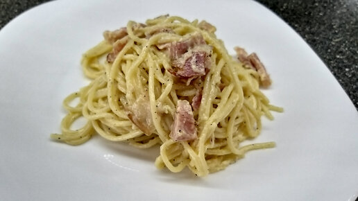 Паста карбонара Спагетти Карбонара со сливками и беконом.