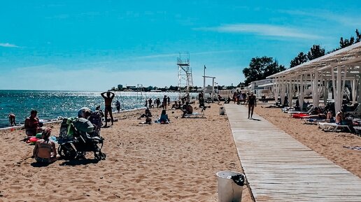 Евпатория Крым. Отдыхающие лезут купаться в холодное море. Водоросли на пляже.