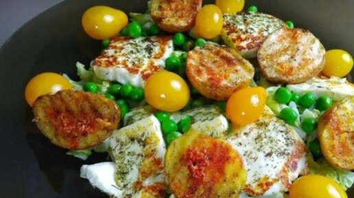 Теплый салат с жареным сыром