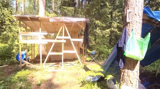Живем в лесу в палатке, а сами рядом строим избушку \ Каркасный дом ни как у ЛЕСНЫХ