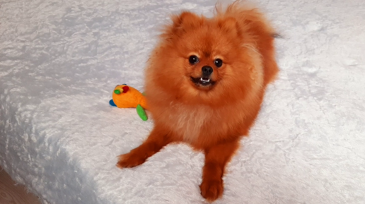 Посмотрите, как шпиц Баффик выполняет команды: сидеть, лежать, голос и дай лапу!