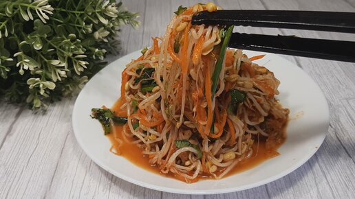 Корейский салат из пророщенных бобов маш
