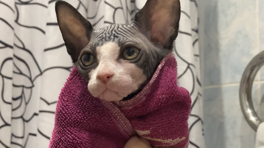 Сфинкс очень не любит купаться! Ну а что поделать? Приходится!