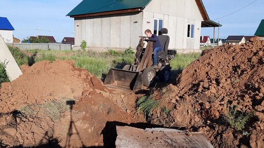 Возим глину самодельным мини погрузчиком. Провели воду на участок.