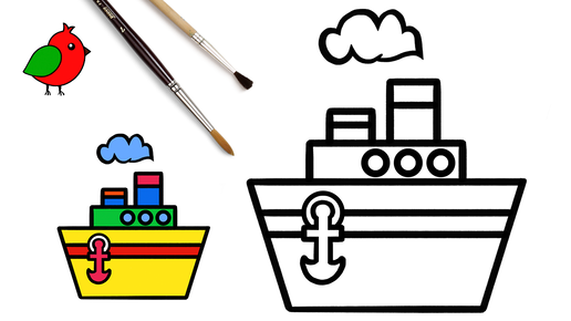 Раскраска Мимишный Кораблик / Раскраски для детей корабль / Как Нарисовать и Раскрасить Кораблик / Рисуем рисунок с детьми