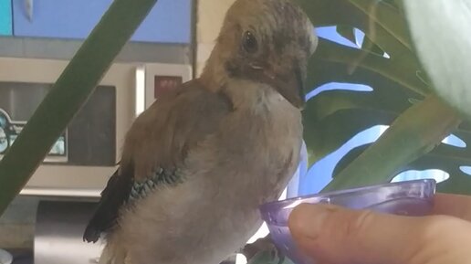 Дети подобрали птенца сойки. У нас в семье еще один нахлебник.
