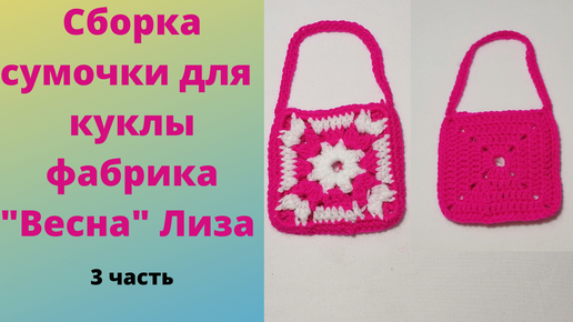 3 часть. Сборка сумочки для куклы. Сумочка из бабушкиного квадрата. Сумочка крючком для начинающих.