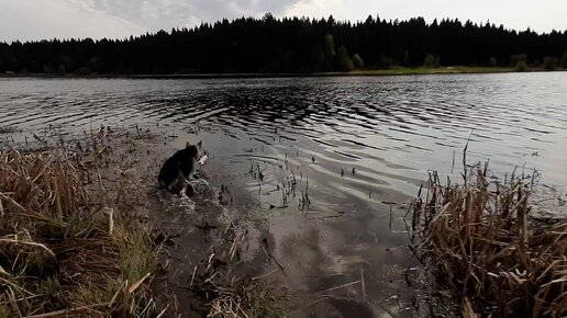 Последний шанс научить псеныша Дарика плавать. Вдруг его завлечет пластиковая бутылка