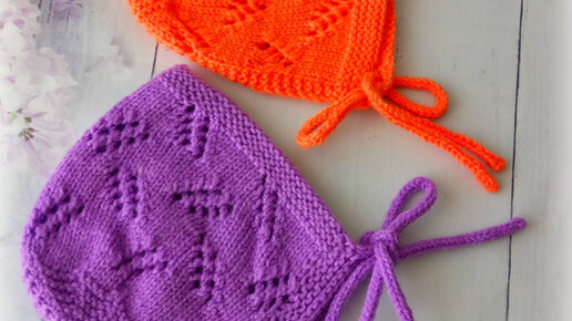 Ажурный чепчик с круглой макушкой спицами