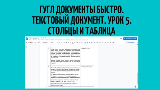 Гугл документы. Google Docs. Вставляем в текст Колонки и Таблицы. Урок 5.