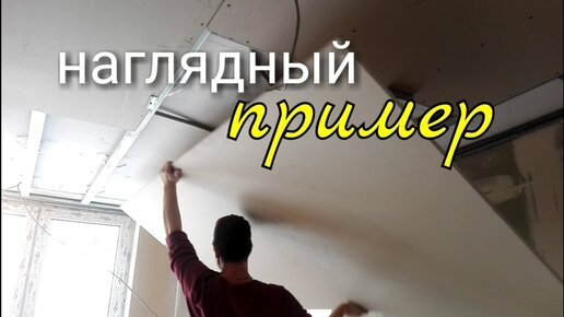 Как ОДНОМУ прикрутить гипсокартон на потолок? Наглядный пример.