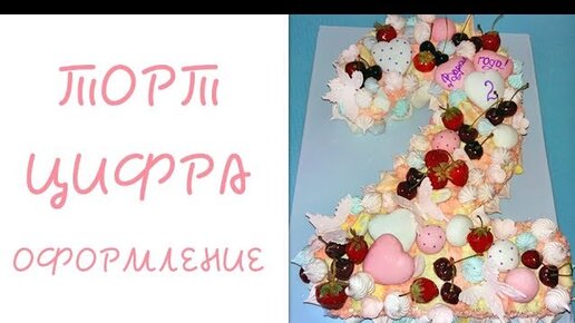 Украшаем Торт ЦИФРУ. Чиз-крем, ягоды, пряники, безе и маршмеллоу / Cake decoration