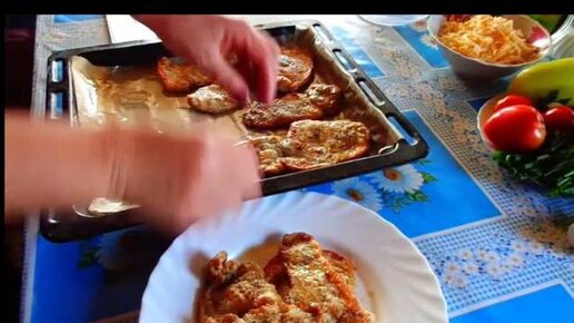 Свинина под шубой в духовке.Вкусные свиные отбивные!
