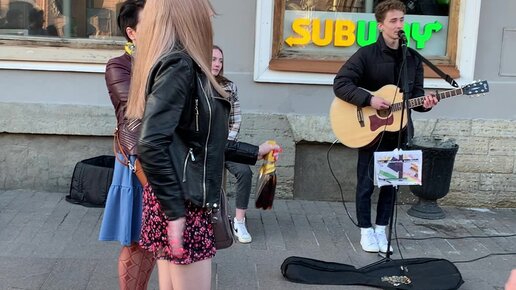 Уличные музыканты в Питере. Зрители танцуют прямо на Невском проспекте