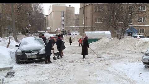 Неравнодушные горожане вооружились лопатами и вышли на борьбу со снегом в своих дворах