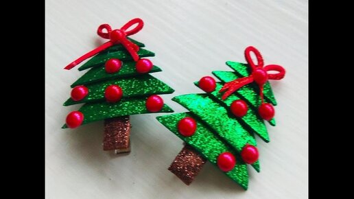 Ёлочки-заколочки из глиттерного фоамирана за15 минут Мастер-класс / DIY