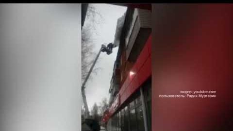 В Уфе сотрудники жилищной организации при чистке наледи с крыши дома повредили фасад магазина