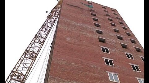 Башенный кран, который накренился на строящийся дом, перепугал жителей улицы