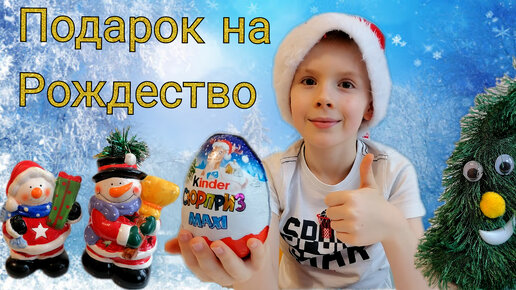 Подарок на Рождество. Устин получает подарки от друзей. Волшебная ёлка. Большой Киндер Сюрприз