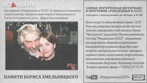 Памяти Бориса Хмельницкого. В студии дочь - Дарья Хмельницкая. "Рожденные в СССР" Ностальгия