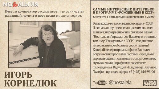 Игорь Корнелюк "Рожденные в СССР" НОСТАЛЬГИЯ