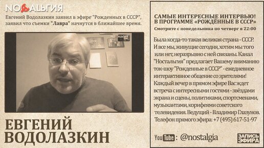 Евгений Водолазкин "Рожденные в СССР" НОСТАЛЬГИЯ
