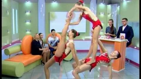 Утро в столице - тренер по спортивной акробатике Татьяна Шатунова со своими воспитанниками