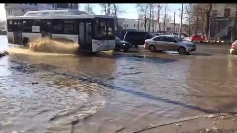 В Уфе затопило проспект Октября в районе остановки Фирма Мир