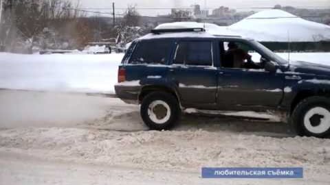 В Уфе внедорожник вытащил застрявшую фуру из снежного плена