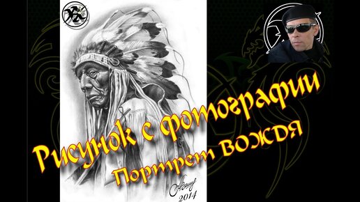 Рисунок с фотографии. Портрет индейского ВОЖДЯ. Карандаш, шариковая авторучка.