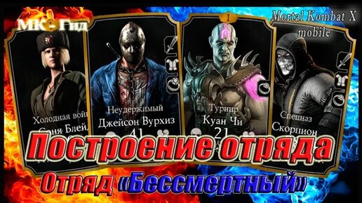 Построение отряда: № 5;Отряд бессмертный: Куан Чи Т; Джейсон Вурхиз Н; Скорпион С, Соня Блейд ХВ