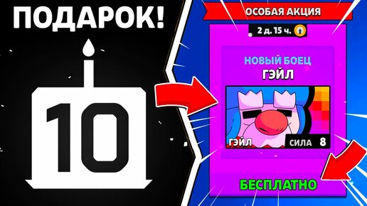 ВАУ! КАК ПОЛУЧИТЬ АКЦИЮ НА ГЕЙЛА БЕСПЛАТНО ! ПОДАРОК В ЧЕСТЬ 10 ЛЕТ КОМПАНИИ БРАВЛ СТАРС!