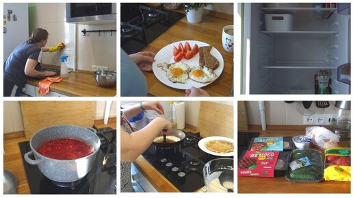 Vlog//Уборка на Кухне и в Холодильнике Готовим Блины и Борщ Покупки