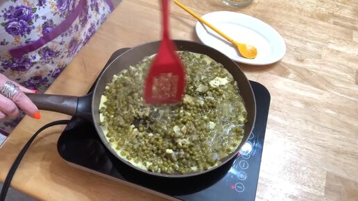 Вкусный сытный завтрак. Зелёный горошек с яйцами.
