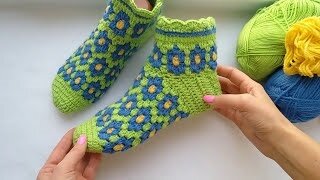 носки крючком, подробный МК (жаккард крючком)