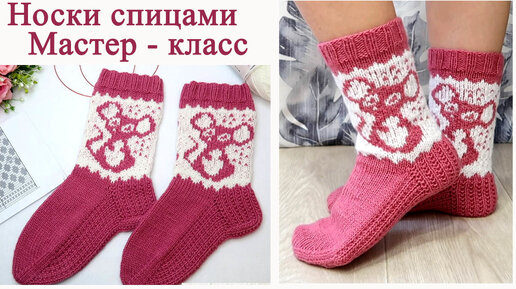 носки спицами Мышки. Жаккард без протяжек. Мастер Класс.