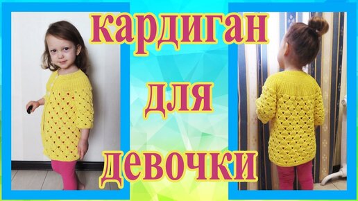 Детский легкий ажурный кардиган спицами на круглой кокетке с ростком на девочку
